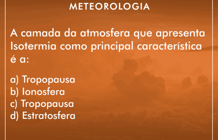 A camada da atmosfera que tem como característica a isotermia (temperatura constante), é a Tropopausa (alternativa C). Essa camada possui